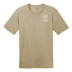 T-shirt with front chest logo. 6.1-ounce, 100% cotton (preshrunk jersey knit) Seamless double-needle 7/8" collar Double-needle sleeves and hem Taped neck and shoulders cotton/poly. Sports Grey 90/10 cotton/poly.