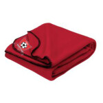 Fleece Blanket with Logo on one corner. Name can be added for an additional fee. Enjoy outdoor games or relax while you watch TV in our warm Sweatshirt Blanket. Perfect for screen printing a logo. 9-ounce, 60/40 ring spun combed cotton/poly Fully hemmed Dimensions: 50" x 60"