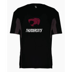 Main body in 100% Polyester with Essortex wicking properties. Side panels in 92% Polyester/Spandex for comfort and breathability. Two button placket for easy decoration. Contrast coverstitch details.